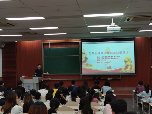 2021-06-17为提高师生识诈防骗的意识和能力,切实维护师生财产安全和校园安全,2021年6月1日下午15时,学院本科生一支部师生代表在重庆城市管理职业学院参加“全民反诈 守护校园”系列主题发布活动启动仪式。本次活动由支部书记组织,支部李珊珊老师带队,18级党员杨青林及19级管理类全体预备党员到场参加,认真聆听。“全民反诈 守护校园”系列主题发布活动启动仪式由市教委、市委宣传部、市委网信办、市公安局、市人力社保局联合主办,...