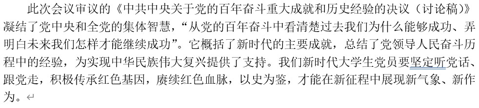 2021-11-12党的十九届六中全会于2021年11月8日至11日在北京胜利召开。此次全会是在“两个一百年”奋斗目标历史交汇关键节点上召开的一次重要会议,全面总结了中国共产党百年奋斗重大成就和历史经验。全会审议通过《中共中央关于党的百年奋斗重大成就和历史经验的决议》。研究生六支部党员通过网络、电视等多种渠道收看十九届六中全会内容及新闻报道,并展开热烈的讨论。支部组织委员杜晨阳说:十九届六中全会全面总结了党百年奋斗的十条历...