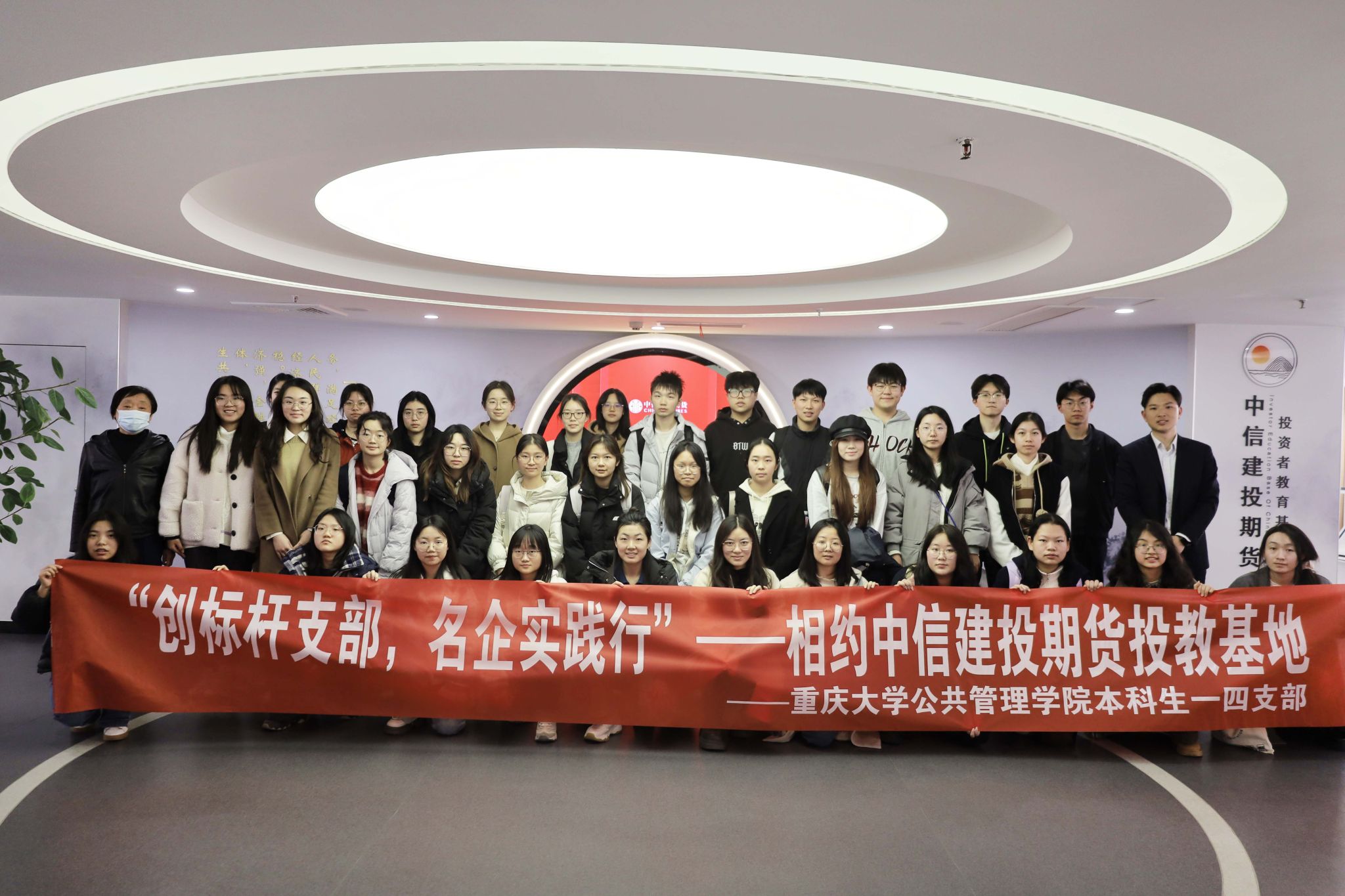 2024-03-11为了给同学们提供更加丰富开阔的实践教育平台,在在线色情 本科生一支部书记王丽娟同志的组织下,在线色情 本科生一、四支部全体党员、2022级入党积极分子、青年团员来到中信建投期货投教基地,展开相关的名企实践行实践活动,本次活动由校职就中心组办,在线色情 承办。2024年3月7日下午1点,在在线色情 本科生一支部书记王丽娟同志的带领下,参与实践的全体同学成功于下午1点30分抵达位于渝中区中山三路皇冠大厦1...