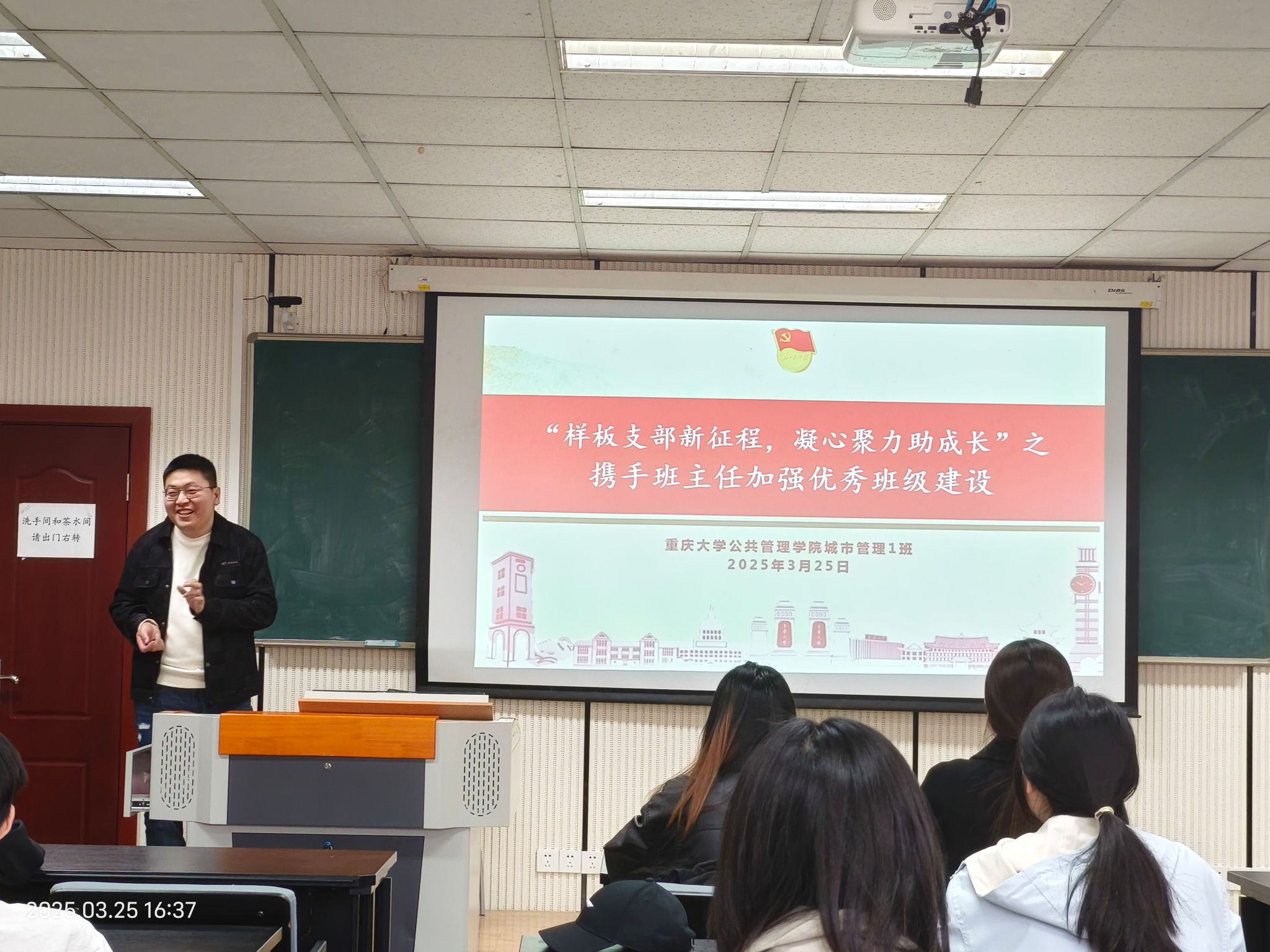 2025-03-292025年3月25日16:30,在线色情 本科生一四支部在学院楼106教室成功举办“样板支部新征程,凝心聚力助成长”之“携手班主任加强优秀班级建设”活动。本次活动由班主任璩路路、一支部党员刘志兰、罗静共同组织,2022级城市管理1班的全体学生积极参与,旨在帮助学生明确发展方向,科学规划升学就业路径。班会伊始,班主任璩路路对城市管理专业的专业前景进行了分析,并指出在大三下这个关键时期,同学们应该明确自己对...