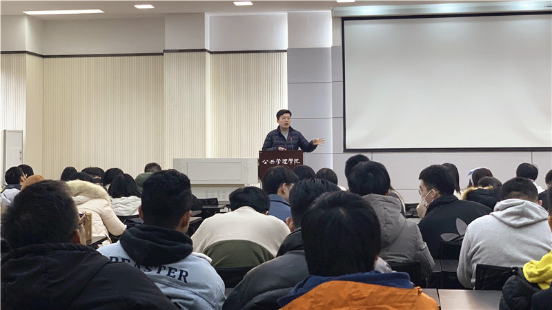 2021届本科生毕业实习动员会暨年级大会在学院102会议室举行。学院副院长李志出席会议并讲话,学院行政管理系主任彭小兵、行政管理系副主任刘晓民、公共人力与社会保障系副主任陈培峰、公共经济学系副主任龙少波、本科生教务办主任朱宇以及2021届全体本科生参加会议。2017级本科生辅导员包晗主持会议。