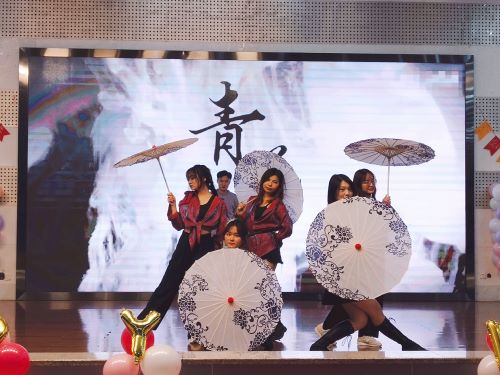 接着,晚会分为四个章节,从“穿越时空,荟萃一堂”、“初来乍到,风华正茂”、“喜气盈盈、满院春临”、“星河金乌、万物有情”几个主题,为现场观众带来了形式丰富、引人入胜的演出。其中,四院联合的冬不拉弹奏《aday》为同学们带来了一场热情豪放的视听盛宴,极具民族特色的旋律和华美鲜艳的服饰充分展现了哈萨克族的民族风情。接下来的歌舞串烧《assortment》则直接将整个晚会推向高潮,江南烟雨的温柔多情和摩登时代的热情洋溢在18级同学们的演绎下展现地淋漓尽致,现场掌声雷动。