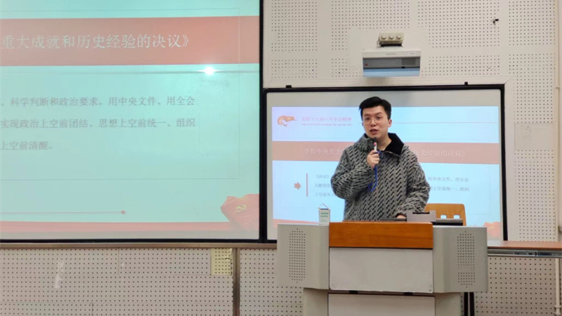 辅导员包晗为学院2020级全体本科生作党的十九届六中全会精神专题宣讲。包晗重点围绕学习《中共中央关于党的百年奋斗重大成就和历史经验的决议》和习近平总书记关于《决议》的说明进行宣传宣讲,师生共同交流学习体会。