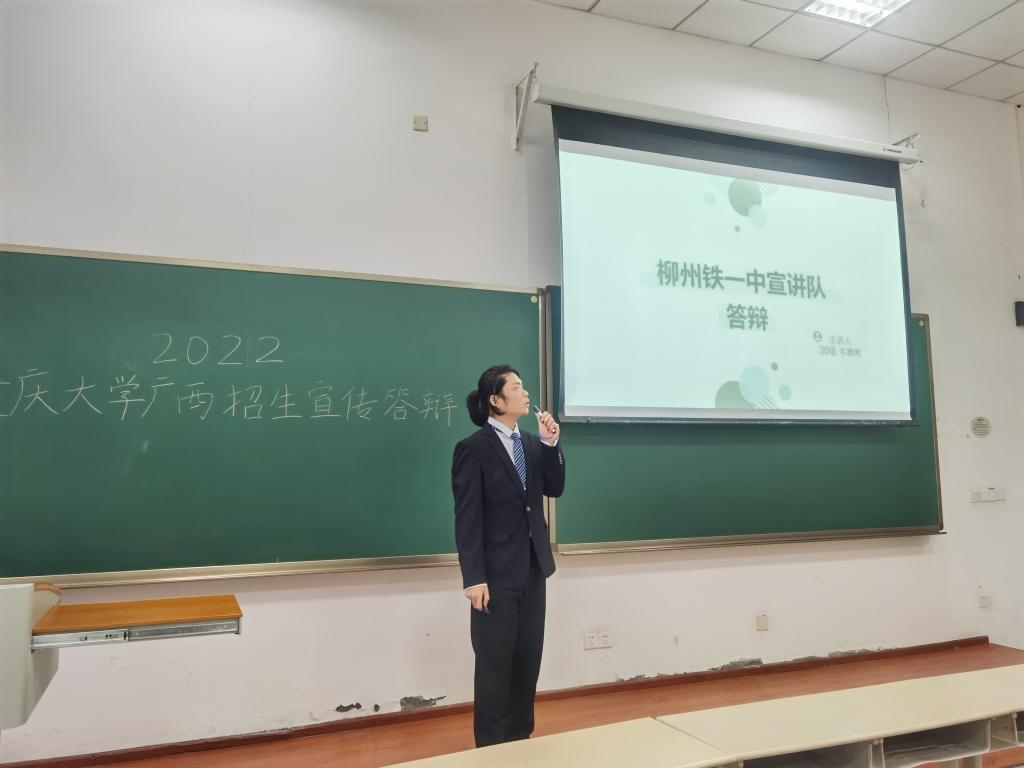 寒假返校招生宣传活动中,广西壮族自治区宣讲团参加答辩的队伍分别是柳州铁一中宣讲队、南宁三中宣讲队、桂林十八中宣讲队等八支队伍。虽然每支队伍的答辩风格各异,但内容都精彩绝伦,赞声不绝。