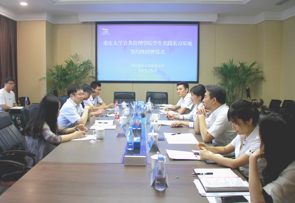 与两江新区人力资源公司共建学生实践实习基地签约暨挂牌仪式在两江企业总部大厦210会议室举行。