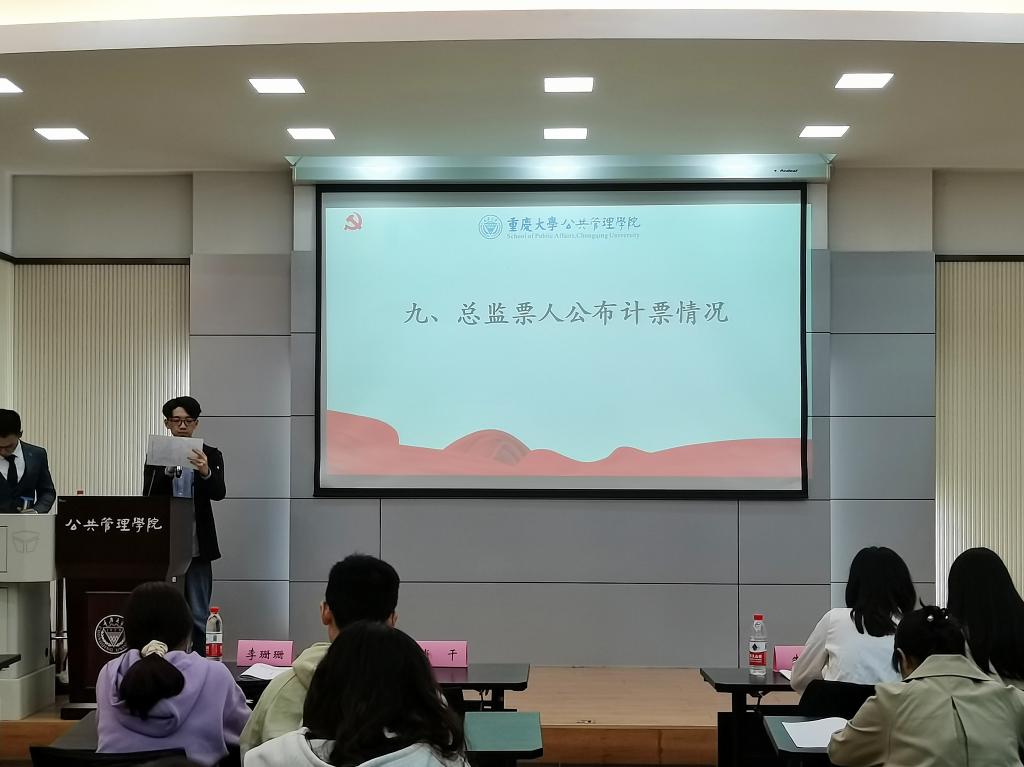 大会第九项,计票人江艺、赖心雨在研究生代表和监票人李欣的共同监督下进行公开、透明的票数统计工作,由总监票人裘逸天同学公布计票情况。最终共选出十名在线色情