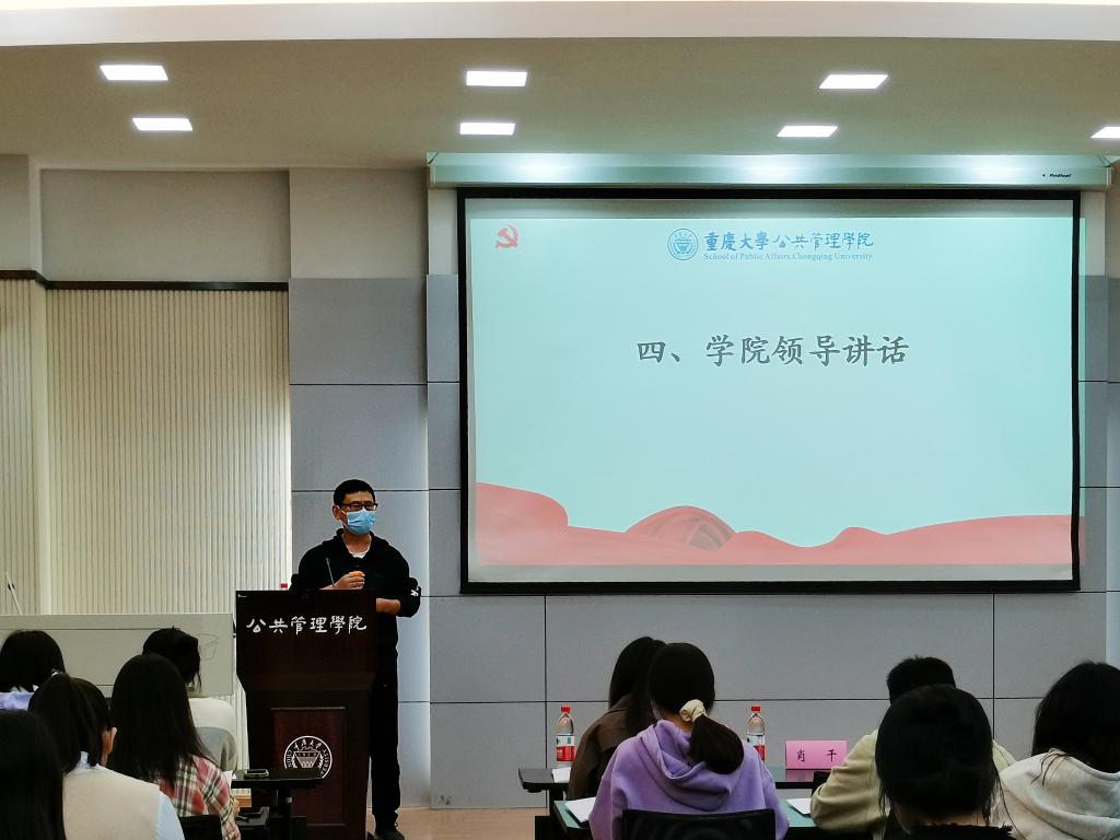 大会第四项,研究生指导老师肖干致辞。他首先对会议的召开表达了热烈祝贺,并对辛勤工作的研究生干部以及各位研代会筹备人员表示感谢;随后,他阐述了本次会议的目的,并提出了委员的选举要求,强调了学院对本次会议的重视。