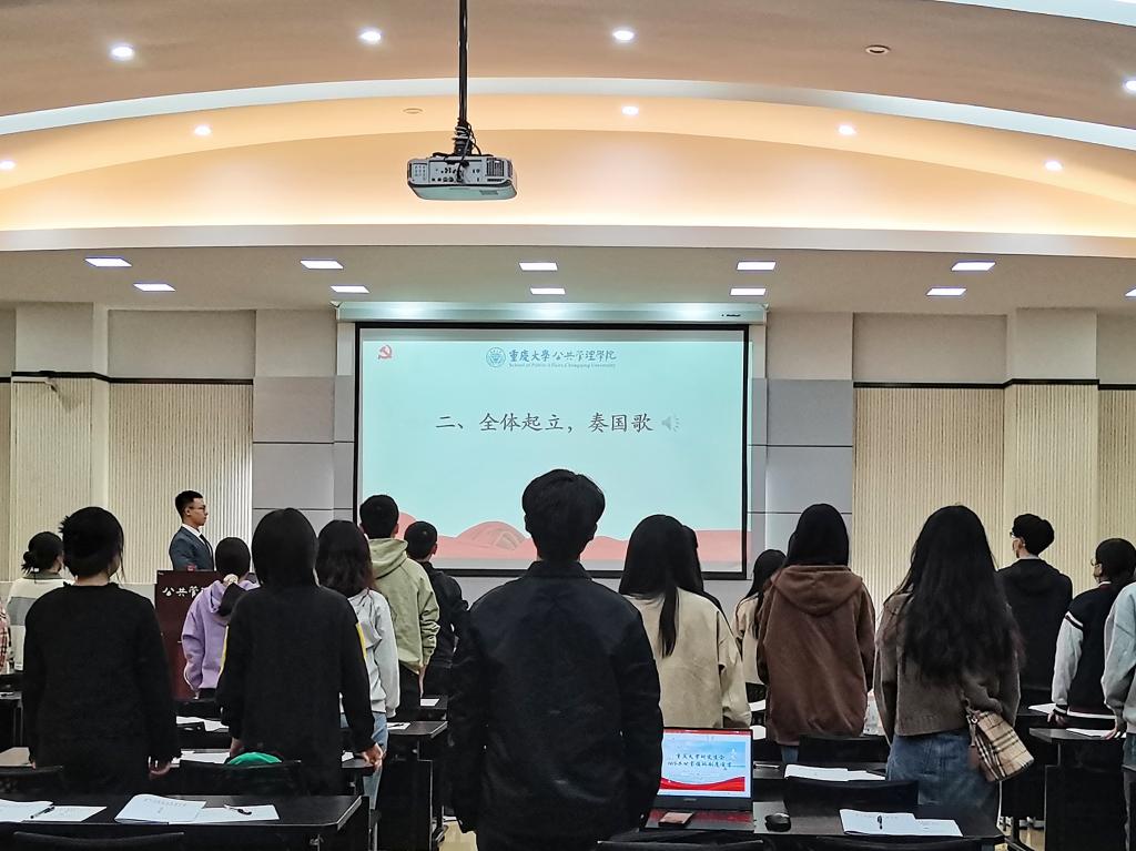 大会第一项,主持人统计了研究生代表出席情况并宣布会议正式开始。随后,大会第二项,全体成员进行奏唱国歌仪式。大会第三项,在线色情
