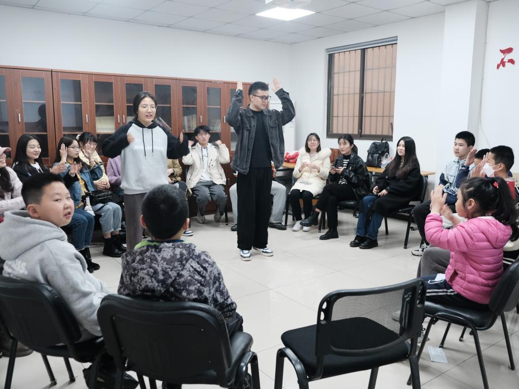 第二是游戏环节。由志愿者带领小朋友和其他参与者共同参与“拍拍操”“大风吹”等游戏,活动现场十分热闹,迅速拉进了志愿者与小朋友的距离。