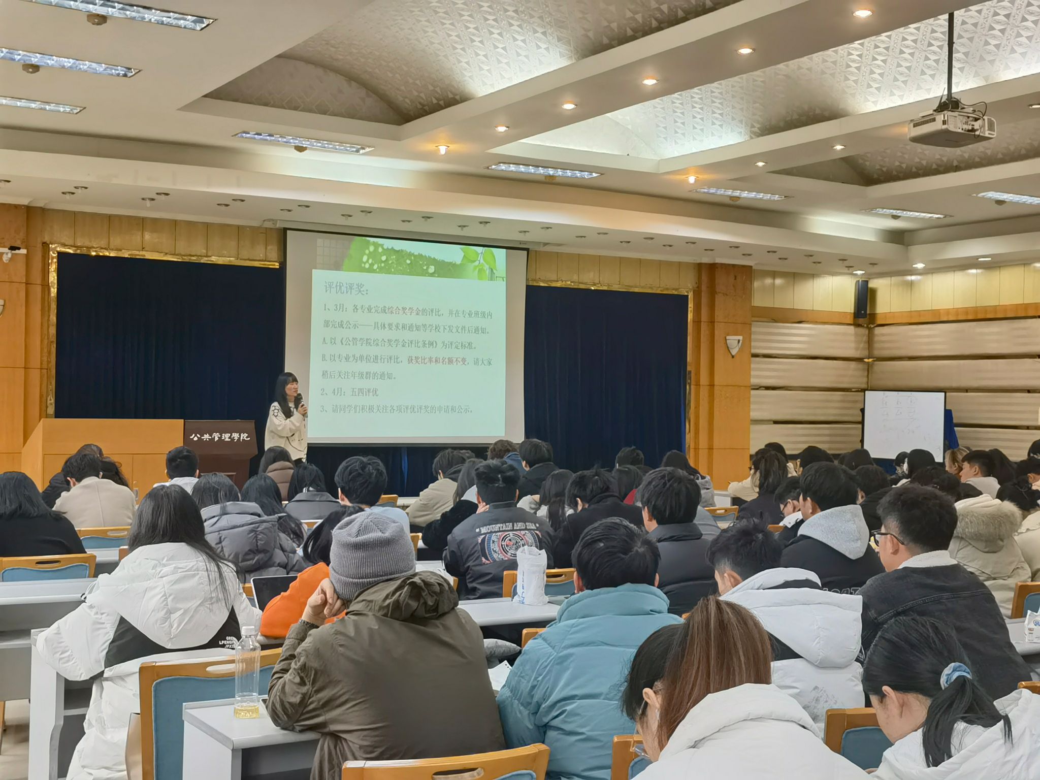 随后,徐柳老师给全体同学梳理和介绍了本学期的评优评奖、入团、推优、入党等重要工作的开展。还特别对全年级同学们进行了开学安全教育,提醒大家务必关注人身安全和校园生活安全,提高警惕防诈骗。
