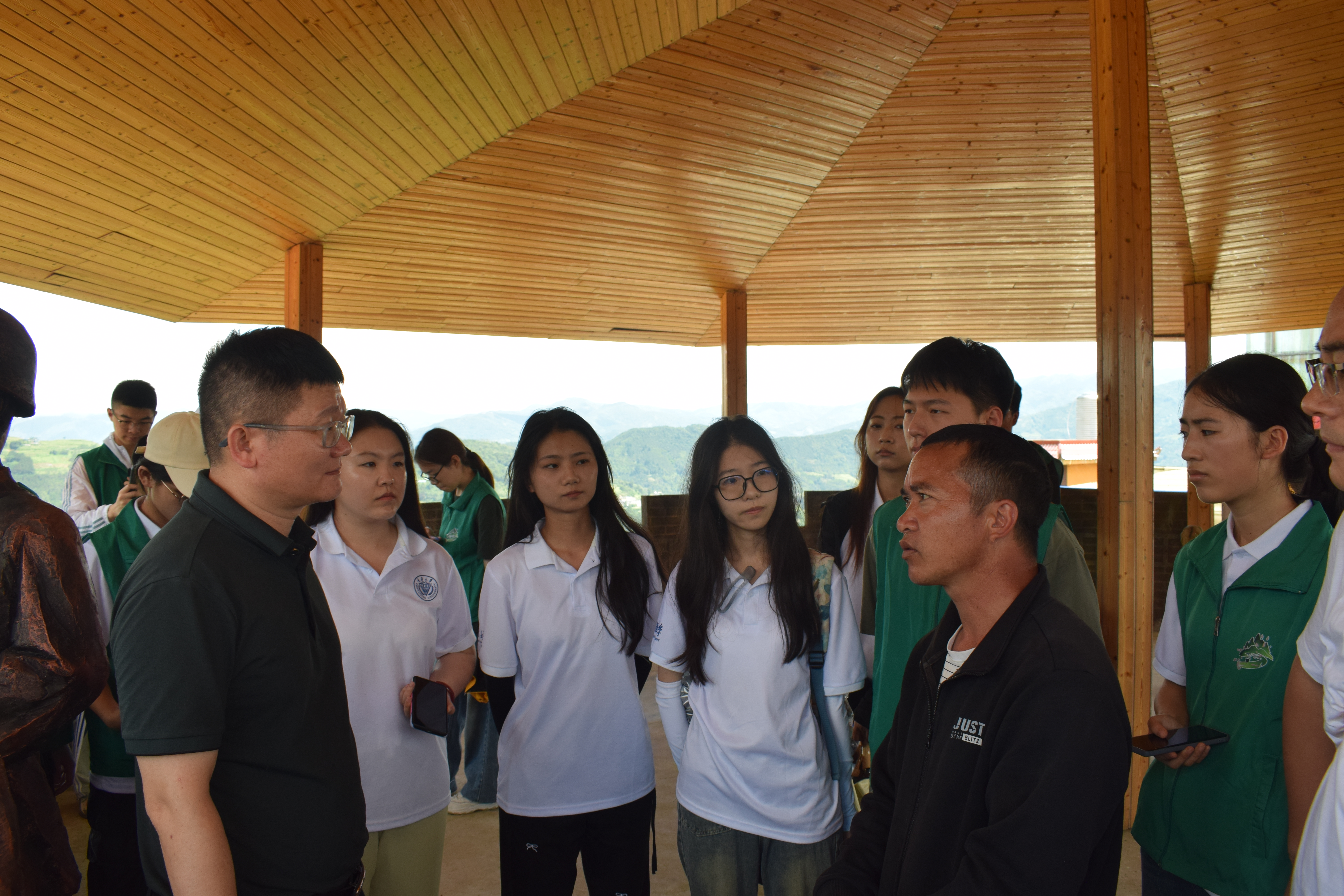 梅尼新寨世居瑶族,是越南莱州省孟谍县都龙乡通往中国红河州绿春县平河镇的“国门”村寨,也是绿春县边境线上唯一的“红色基因幸福村”。“这分别是团结之鼓、奋进之鼓、幸福之鼓。”在梅尼新寨村口小广场,村党支部书记王腰欣喜而自豪地向同学们介绍村庄景观,带领大家直观感受瑶族文化的魅力和脱贫攻坚后村寨的巨大变迁。从古朴的瑶族建筑到精湛的扎染技艺,同学们仿佛穿越时空,深入了解了瑶寨的悠久历史、独特民俗与迷人田园风光。随后,同学们走进村内的防空洞遗址,感受战争时期边疆军民守边护边的壮歌。历史的硝烟已然退去,碉楼上的党旗高高飘扬,同学们深刻体会到要铭记历史,不忘初心,以实际行动践行维护国家统一和民族团结的使命与担当。