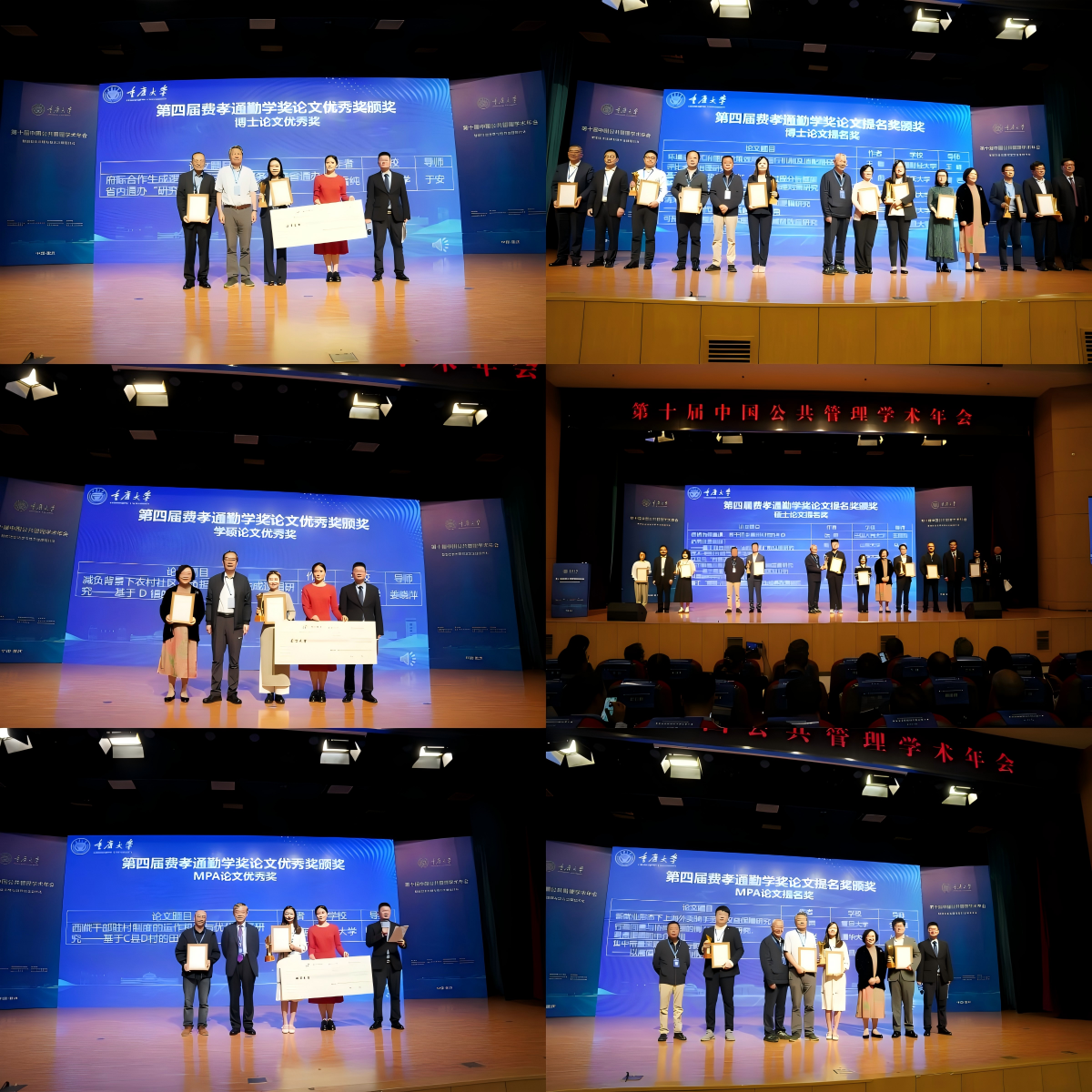 丁煌宣读获奖名单,徐晓林、哈尔滨工业大学米加宁教授、四川大学姜晓萍教授、陈东、汪涛为优秀论文提名奖获得者及其导师颁奖,薛澜、丁煌、复旦大学竺乾威教授为优秀论文奖获得者及其导师颁奖。