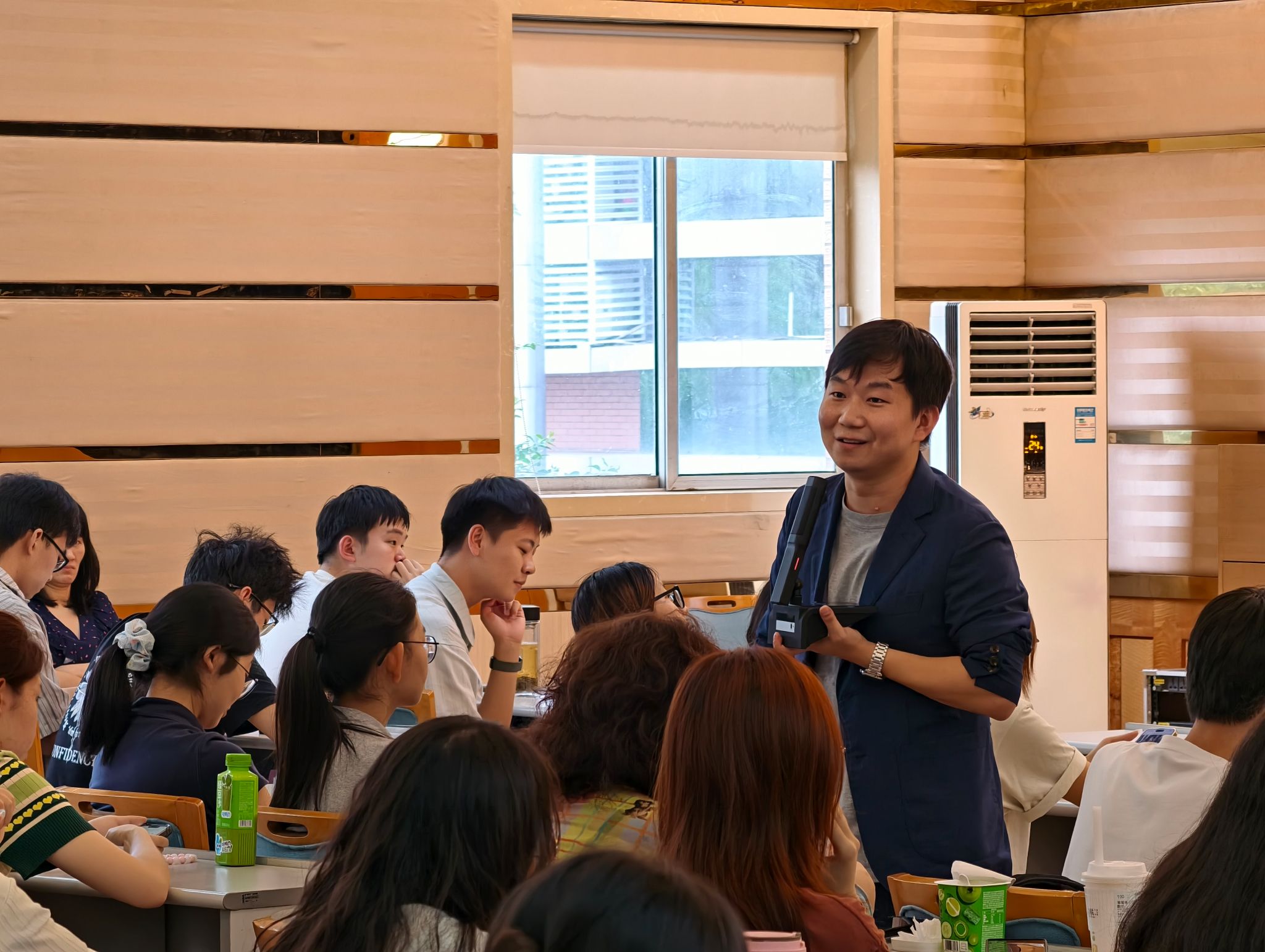 谈及“勇气的力量”,柏士雄回顾了大学阶段的主动探索历程:坚持坐第一排听课、主动与老师及外教交流、争取交换机会并克服经济压力赴台学习。他强调,“勇气不是没有恐惧,而是带着恐惧依然向前”,并鼓励同学们勇于突破舒适区,积极链接资源,为未来发展奠定基础。