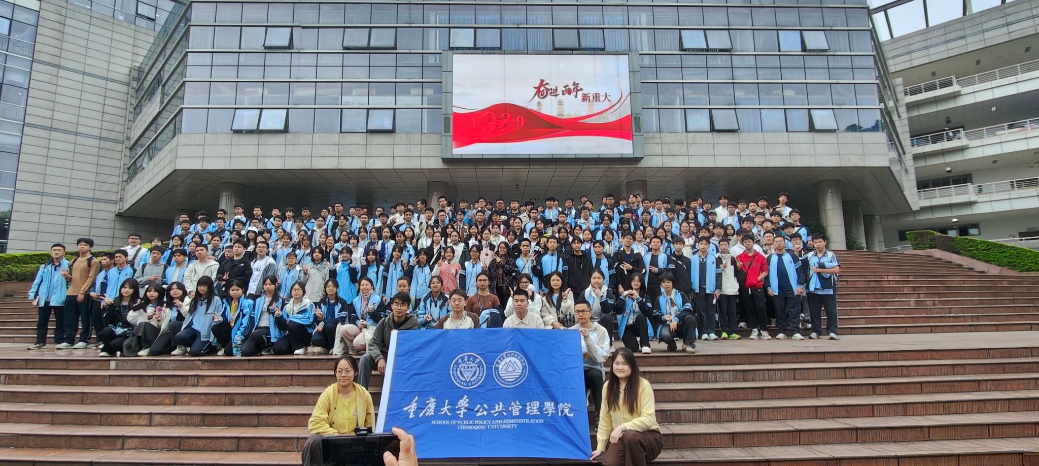 在合影留念环节,师生们在学校标志性建筑校园主教学楼前留下了珍贵的瞬间。