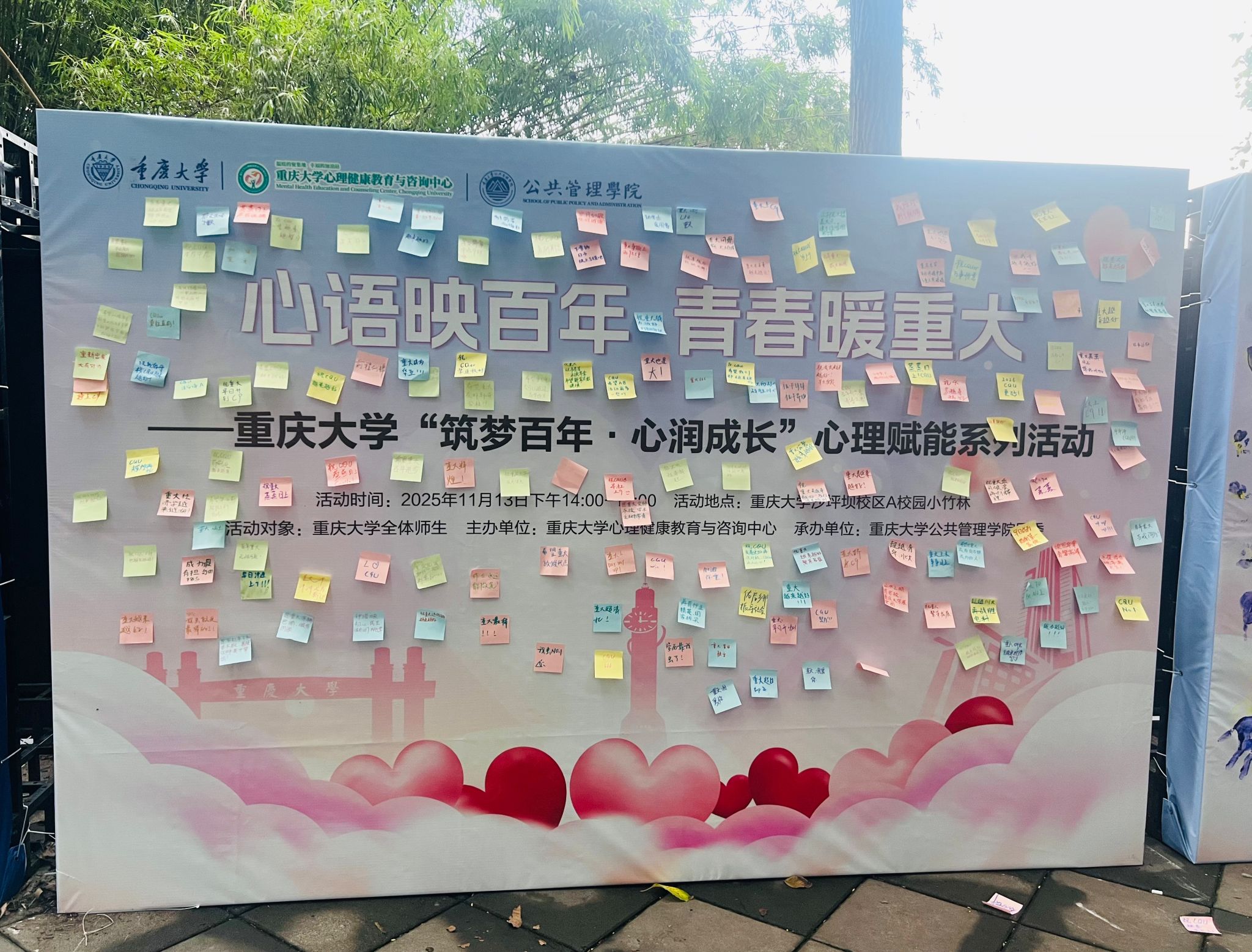 团委承办的“心语映百年,青春暖重大”心理赋能活动在沙坪坝校区A校园小竹林顺利举行。活动吸引了全校学生的积极参与,反响热烈。