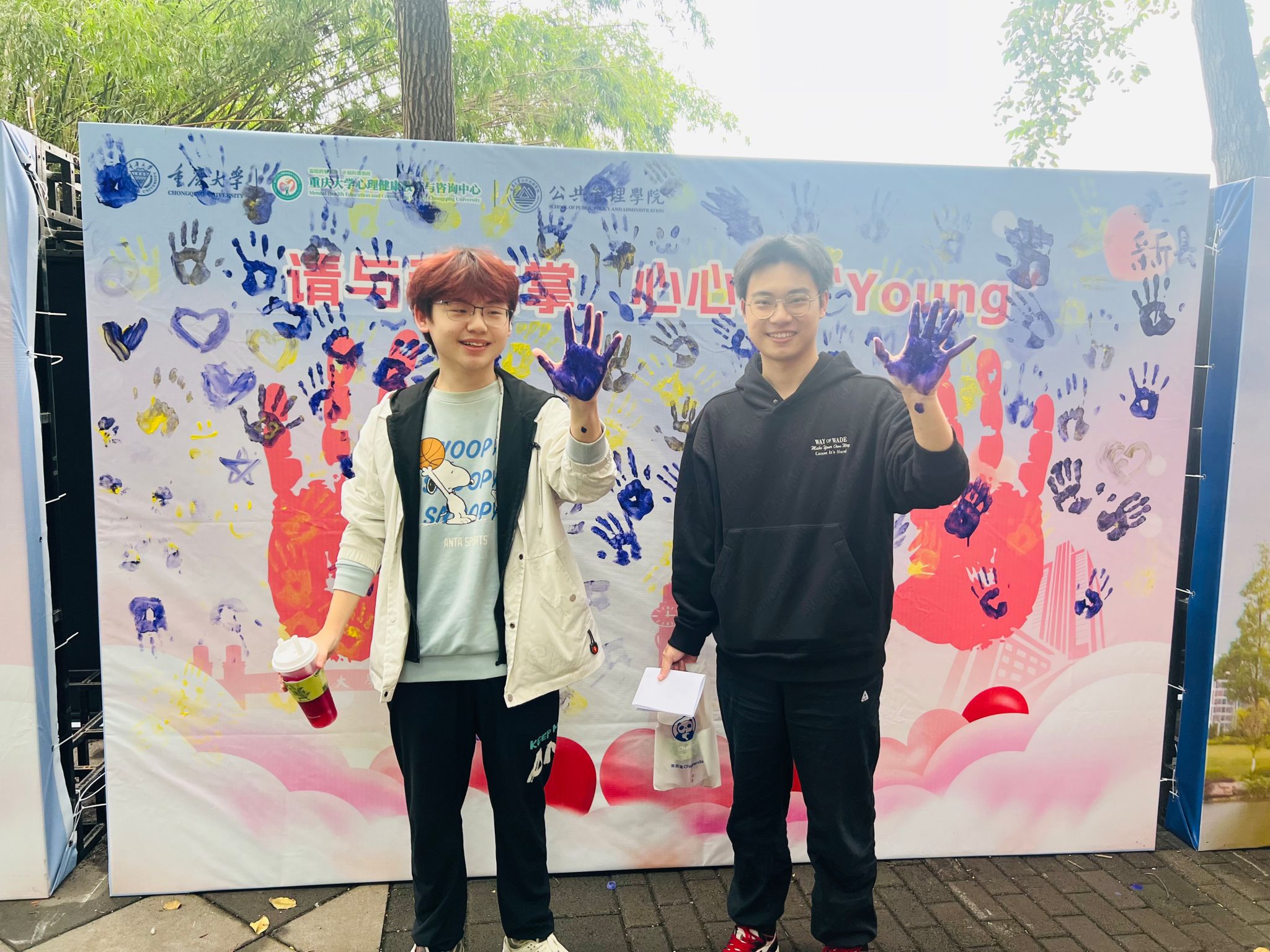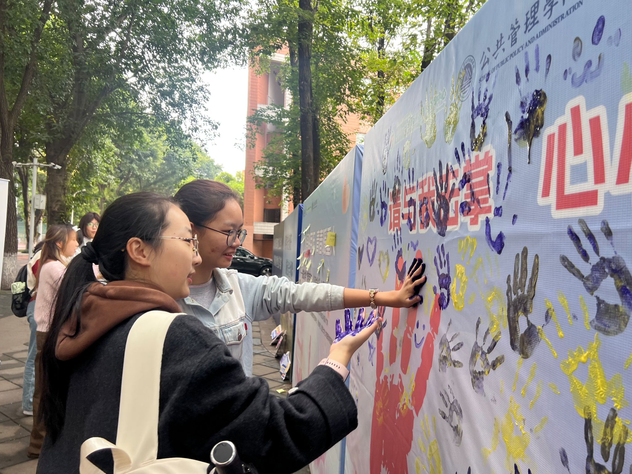 随着参与人数的增加,五彩斑斓的手印逐渐汇聚成温暖的集体画面,生动展现了重大人团结向上、青春昂扬的精神风貌。