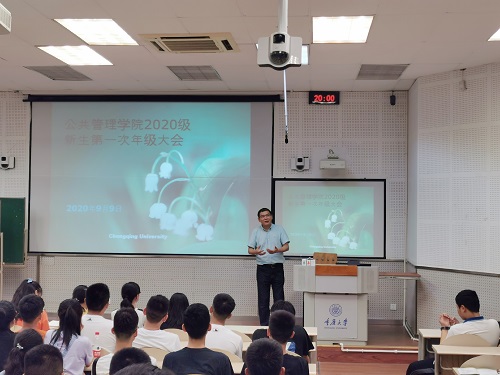 于虎溪校区D1137教室举办了2020级本科生开学典礼暨首次年级大会。学办主任兼19级辅导员王丽娟主持了本次会议,学院党委副书记兼纪委书记袁晓浩发表了讲话,20级班主任及20级全体同学参与了本次会议。