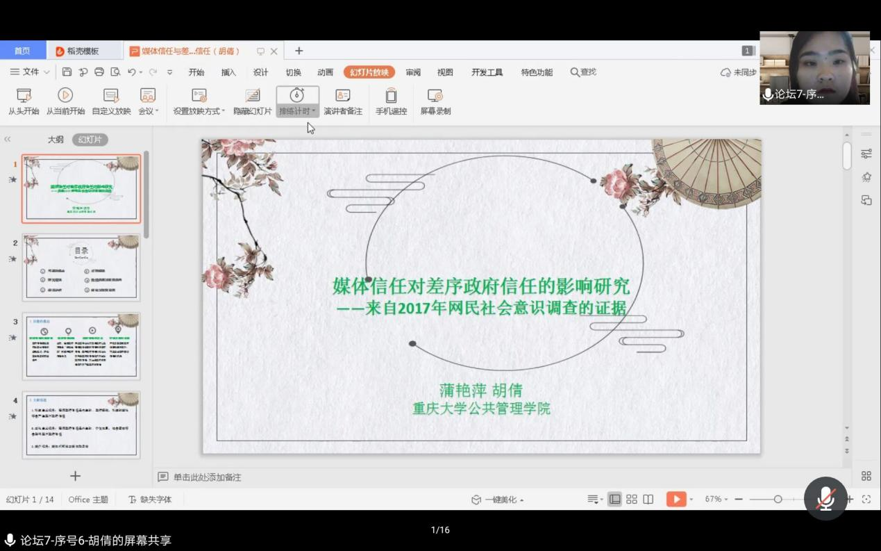 下午15时许,胡倩同学在平行分论坛七:社会治理与民生保障分论坛分享了自己的学术论文,胡倩同学汇报的论文是在在线色情