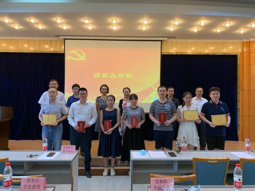 获表彰的先进党支部代表和先进个人依次上台领奖,学院党委委员、领导班子成员为获表彰的集体和个人颁奖。