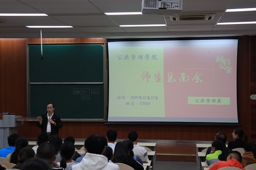 在学院领导发表了精彩的致辞后,下午3时许,公管类的师生于分会场D1134举行了师生见面会,老师和同学们就公管类专业相关问题进行了深入的交流与讨论。老师们对公管类专业的解读与分析精辟透彻,在场的学生受益匪浅。