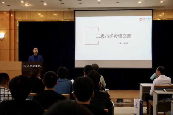 随后,学院2006级产业经济学硕士、现任深圳前海德毅资产管理有限公司总经理的梁正东校友就“价值投资”上台发言。他提出,价值投资的收益分为三类,第一类是从企业发展获利,第二类是凭着感知资本市场的敏锐度从散户处获利,第三类是从央行的各个政策中获利。而三者方式虽不同,都需要科学的策略选择和对大环境的全面了解。他还建议学院在课程设置方面重点教学风险控制,这有利于学生树立正确的投资理念。
