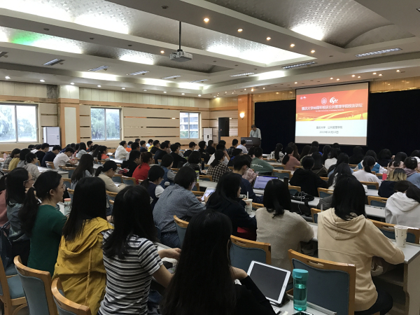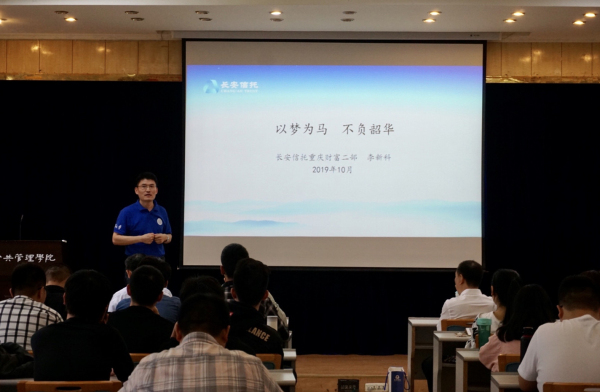 首先发言的是学院1995级国际经济学本科、1999级产业经济学硕士,现任长安国际信托重庆财富二部负责人的李新科校友。他结合自身工作经验,讲述了20年来我国经济社会“形势大不同”的具体表现。他认为,中国经济正进入新常态,市场出清、金融去杠杆正在逐步实现。他强调了“智慧”“态度”与“选择”在当今就业市场的重要性,建议同学们在夯实专业知识的同时,一定要保持良好心态应对各种挑战。李新科校友深入浅出的演讲为同学们带来了不一样的视野,赢得现场热烈掌声。