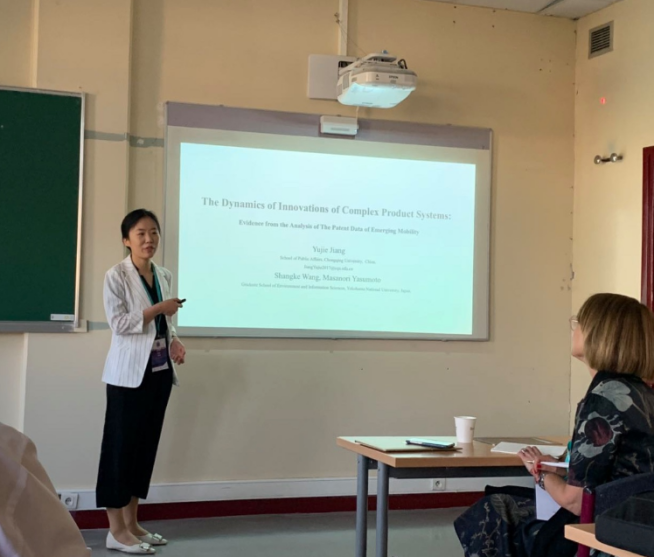 蒋瑜洁老师在本次年会的“新兴产业生态系统的创新设计”(the Design of New Industrial Ecosystems)平行分论坛做了以“复杂产品系统动态创新研究:基于出行行业的专利数据分析”(The Dynamics of Innovations of Complex Product Systems: Evidence from the Analysis of The Patent Data of Emerging Mobility)为题目的全英文主题发言,并与来自查尔姆斯理工大学、巴黎综合理工大学、国立巴黎高等矿业学院、法国里昂商学院、延雪平大学等高校与研究机构的专家学者、博士研究生就研究发现进行了充分探讨,得到了不少有益的学术反馈。