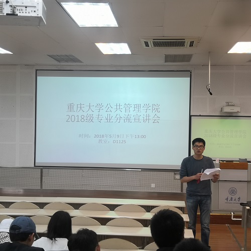 2018级专业分流宣讲会在D1125教室如期举行。学院副院长李志、公共管理系主任陈永进、经济系主任丁从明、公管系副主任刘晓民、教务办朱宇老师、周聆老师、学办主任兼17、18级辅导员王丽娟、辅导员助理杨帅出席了本次会议。