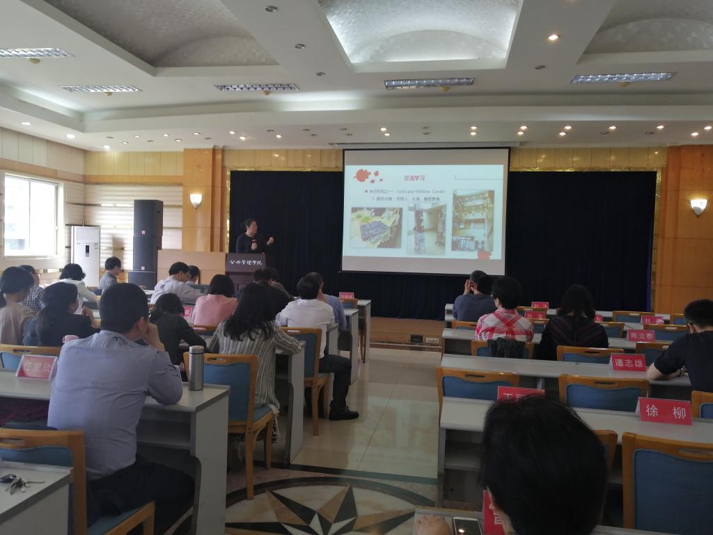 党委组织全体教职员工在学院多功能厅进行政治学习。学院青年教师郭英慧与大家交流挪威访学的过程和心得体会。学院党委书记张邦辉主持学习。