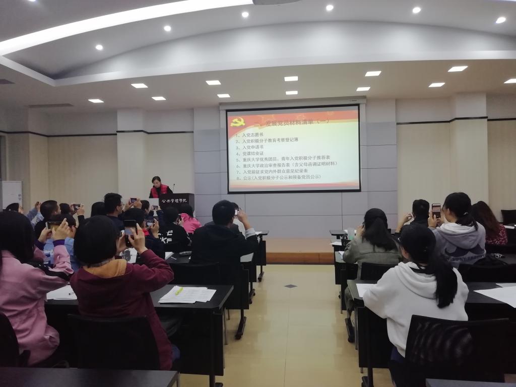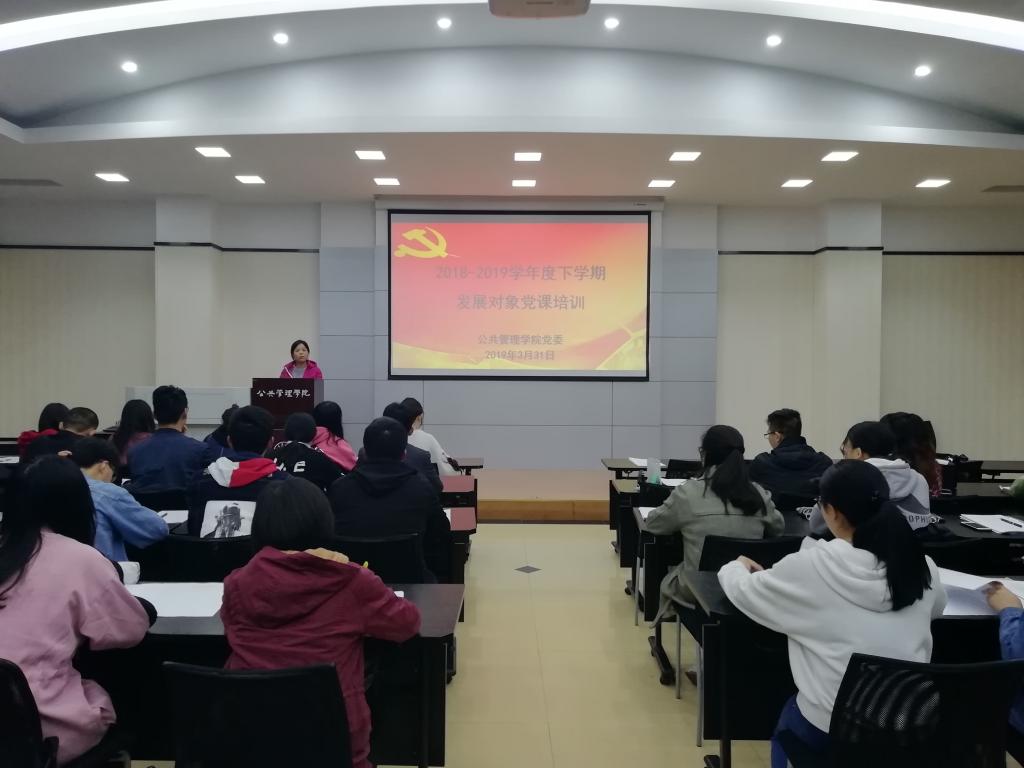 2019年3月31日晚7点,学院党委组织本学期发展对象在学院102多功能厅进行党课培训。本学期发展对象、支部书记、支委等60余人参加了培训。本次培训由组织员何薇老师主持。