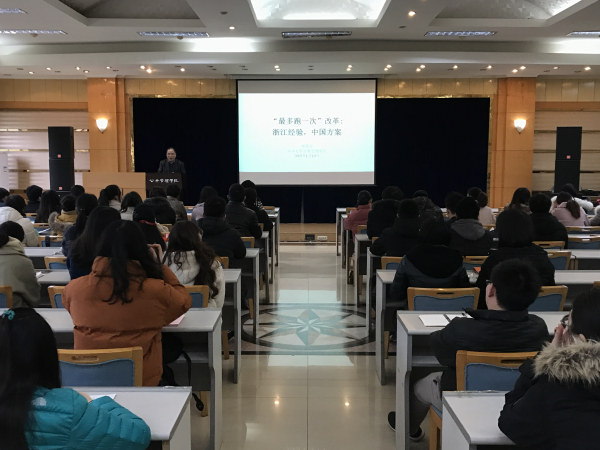 院长郁建兴教授为在场师生就“最多跑一次”改革作主题报告,交流了浙江经验、中国方案,描绘了一幅“新浙江现象”。学院副院长刘渝琳教授主持讲座,学院师生共100余人参加讲座。