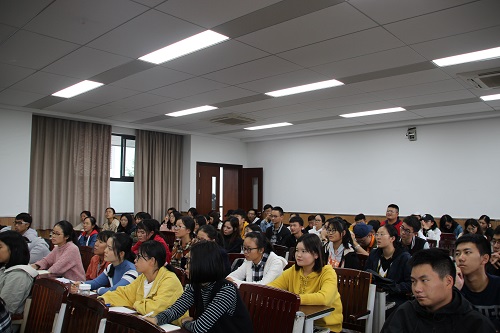 最先提问的一名同学问及有关智慧城市管理的就业前景,对此,陈永进和赵有声教授先后作出回答。两位教授结合当前城市化发展状况、互联网发展趋势、国家政策导向等,多角度地为同学们进行了细致的讲解。