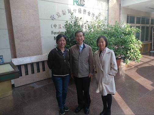 在对北京校友的深度走访中,张鹏、刘淳首先来到农业部对外经济合作中心(中国-欧盟农业技术中心),与1992级贸易经济专业校友张倩,商谈推动学生参加该中心援外培训班的英语志愿者招募。