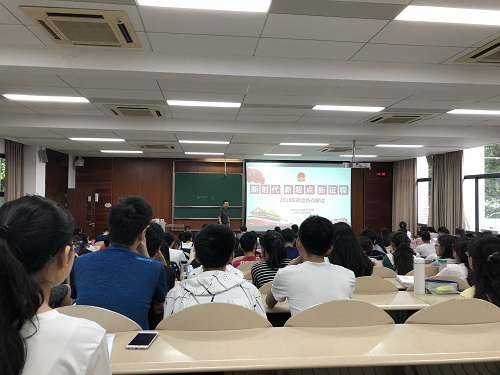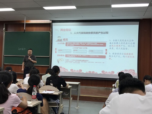 首先,张邦辉教授向同学们讲解了2018年全国两会的相关内容,介绍了两会概况、两会“新看点”、“精解读”和“新征程”。天气虽炎热,但同学们都聆听得聚精会神,目不转睛,并且在课间展开了积极讨论。张邦辉教授认为,2018年的两会中,有几点改革格外重要,值得探讨:比如设置“宪法宣誓”仪式,通过这样的方式,提高了我国宪法的法律地位,彰显了宪法本身的重要性,以及党中央依法治国、依宪执政的坚定信念。正如习近平总书记指出,“对宪法宣誓,有利于彰显宪法权威,增强公职人员宪法观念,激励公职人员忠于和维护宪法,也有利于在全社会增强宪法意识、树立宪法权威”。