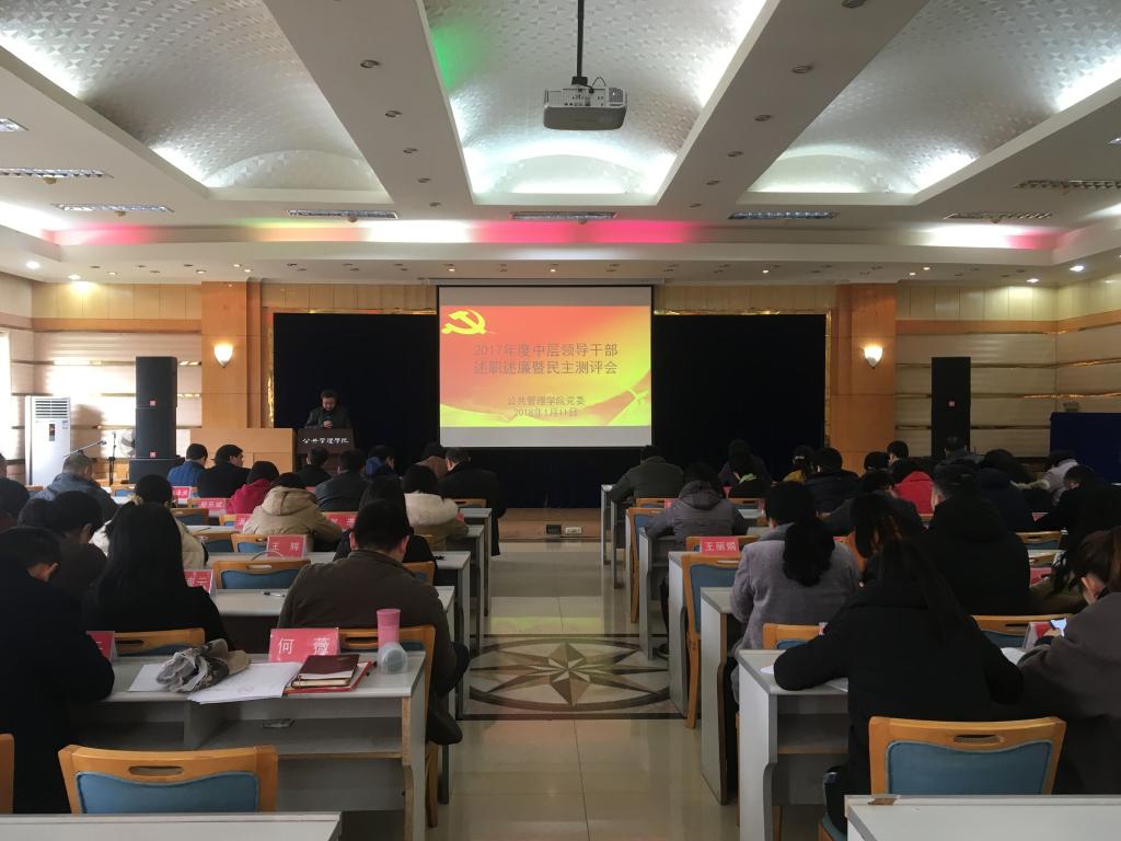 党委在学院二楼多功能厅组织召开了2017年学院中层领导干部述职述廉暨民主测评会。学校考核组成员人事处副处长谢昭明、党委办公室张磊出席会议,在线色情