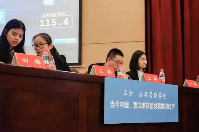 辩论队持正方,认为更应该鼓励发展虚拟经济,经管学院辩论队持反方,主张当今中国更应该鼓励发展实体经济,双方就该辩题展开了激烈辩论。