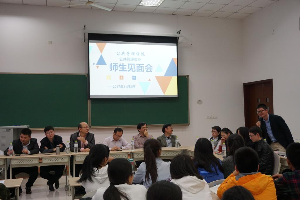 会议伊始,陈永进教授首先介绍了公共管理专业的历史沿革,它承自于20世纪40年代重大法学院的政治系。其他老师也就有关问题进行说明,随后,会议进行到主要环节,以师生问答的形式解决同学们的问题与疑惑。