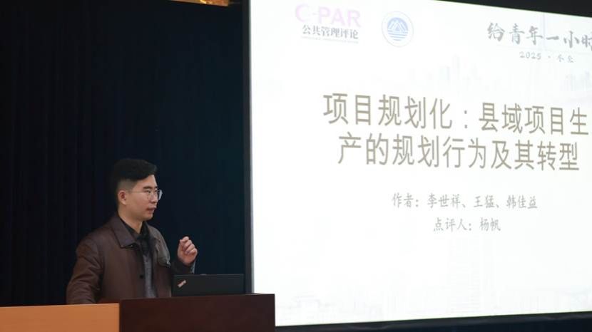 第六小时。特邀点评专家南开大学周恩来政府管理学院杨帆老师对山东大学国家治理研究院李世祥、西南大学国家治理学院王猛与厦门大学公共政策研究院韩佳益合作的论文《项目规划化:县域项目生产的规划行为及其转型》进行了介绍与点评。文章通过深描J县在资源受限、同侪竞争以及项目指标收紧等背景下将本地项目主动纳入上位规划以争取更大发展空间的行为,进一步提出了“项目规划化”的概念。文章指出,县域项目运作从“争资跑项”“跑部钱进”转变为积极争取项目纳入规划,并总结了项目进规划的四个步骤。杨老师指出,文章的研究定位需要进一步明确,应深入探讨项目规划化在何种意义上可被视为一个新的理论概念。根据文章的讨论,项目能否入规、入规项目的数量与优先排序以及项目最终能否获得资源支持等均高度依赖上级政府的制度安排和裁量定夺。因此文章有必要对项目规划化与县域自主性之间的关系进行分析。文献综述宜从不同的解释视角出发,分层梳理相关观点。研究方法上,文章可进一步思考单案例研究功能的定位。最后,文章应补充对项目规划化可能引发的潜在负面效应的讨论。李世祥作者就这些问题进行回复,与会专家和作者还就文章的修改进行了讨论。