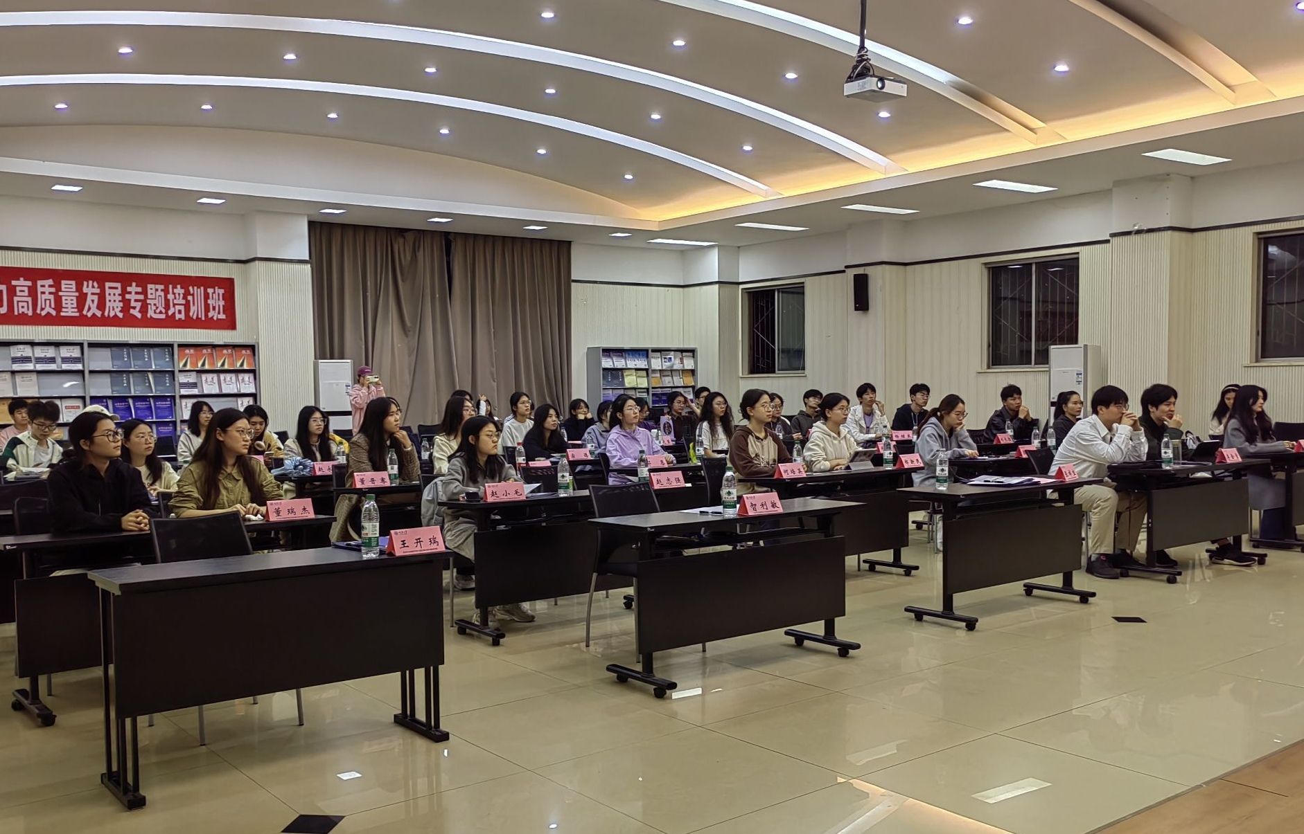 一支部书记王丽娟、四支部书记袁凤筹办,2021级优秀本科生卢惟一主持。学院2022级优秀本科生、全体党员以及积极分子积极参加了此次分享会。