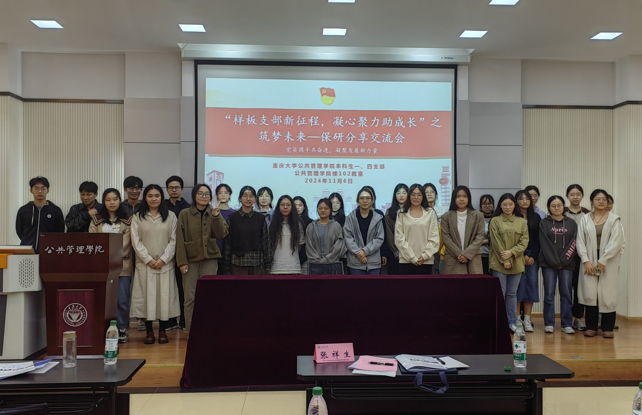 本科生一、四支部于学院楼102教室积极开展了“样板支部新征程,凝心聚力助成长”主题教育系列活动之筑梦未来——保研分享交流会。