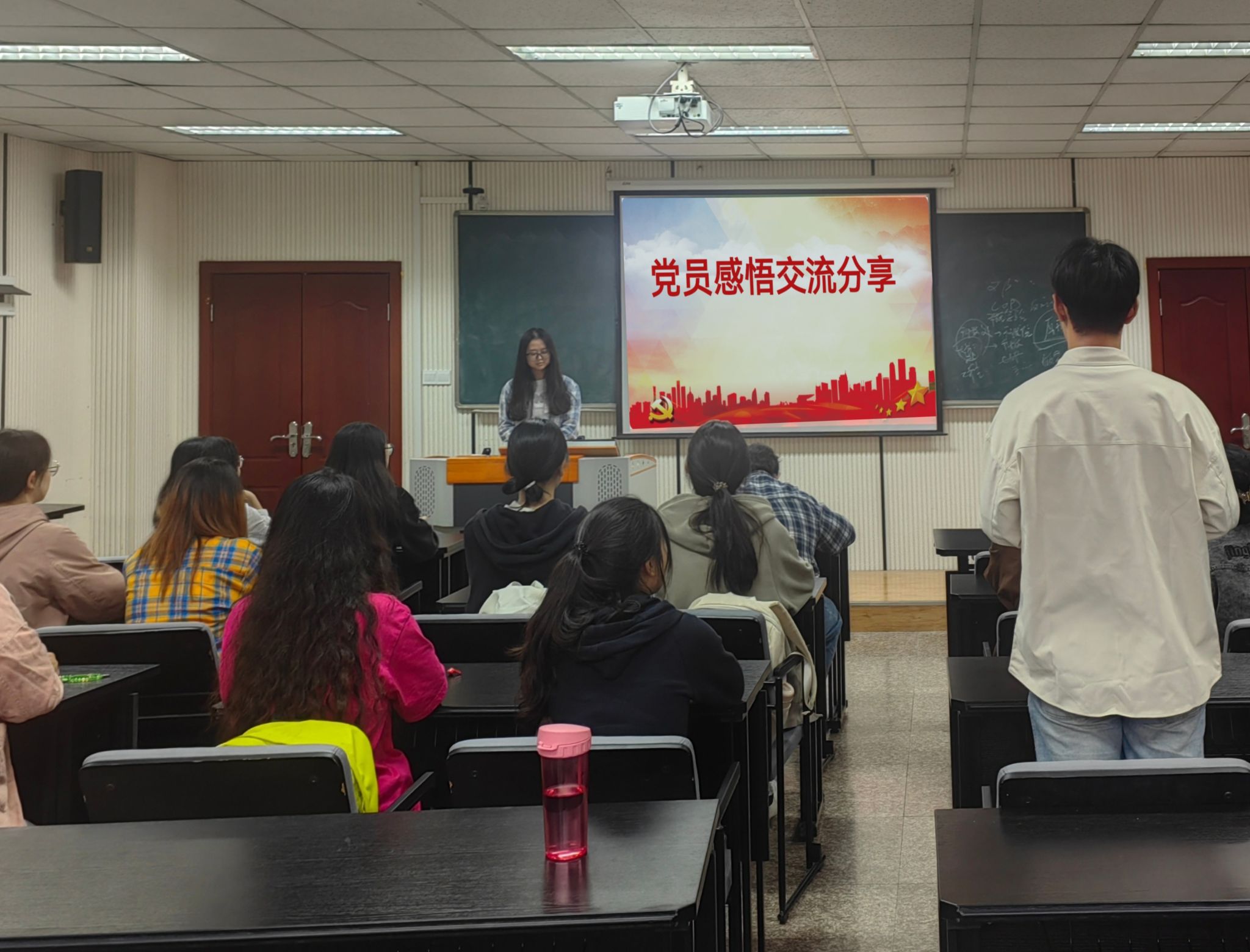 本科生一、四支部全体党员、预备党员于学院楼104教室开展“创建标杆党支部,党员交流共同成长”之“研读《论教育》,共筑教育梦”主题党日活动。