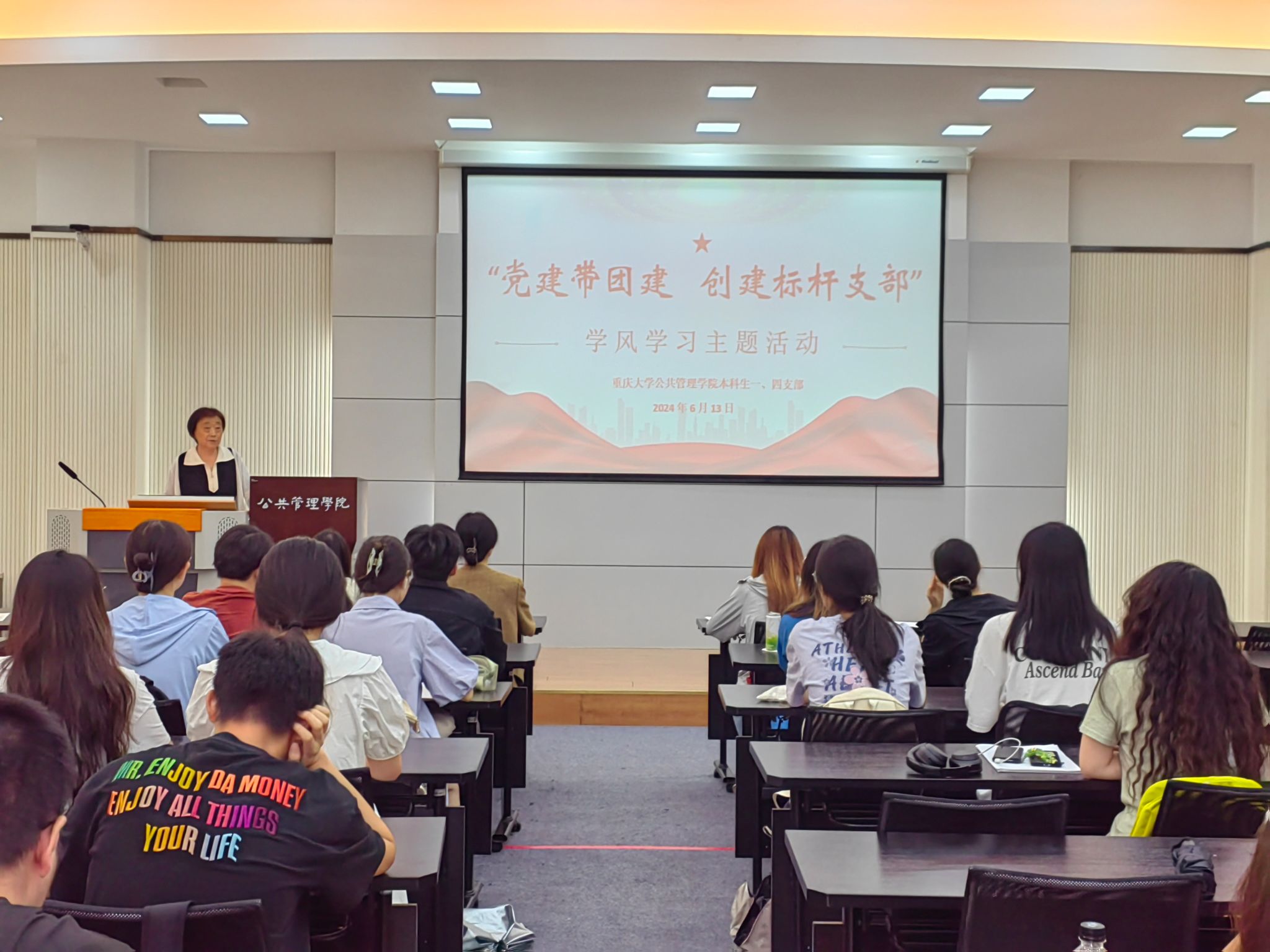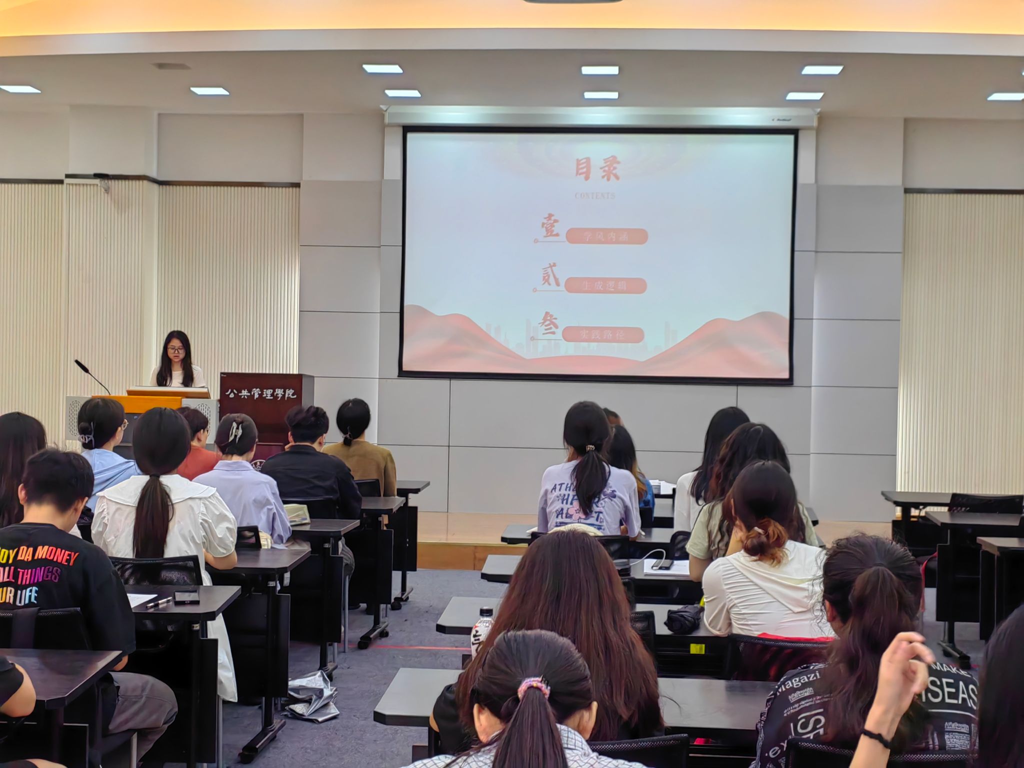 本科生一、四支部全体党员和入党积极分子们在学院楼102多功能会议厅积极参与了“党建带团建,创建标杆支部”之“学风学习”主题活动。此次活动由本科生一支部宣传委员刘志兰主讲,从学风内涵、生成逻辑和实践路径三个维度深入剖析了学风建设的重要性与其实施的方法。
