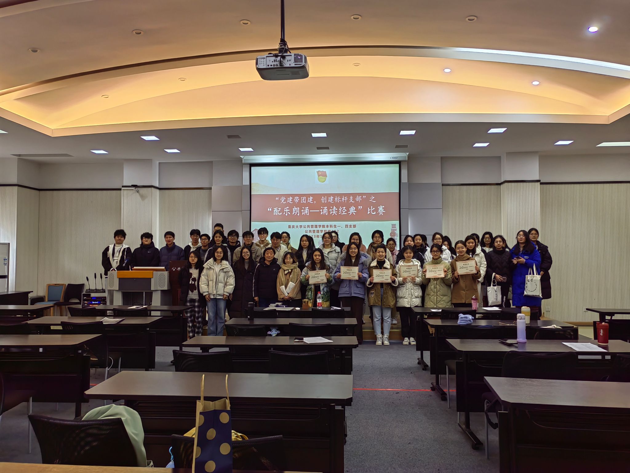 本科生一、四支部于学院楼102教室举行“党建带团建,创建标杆支部”之“配乐朗诵——诵读经典”比赛,本次活动由在线色情