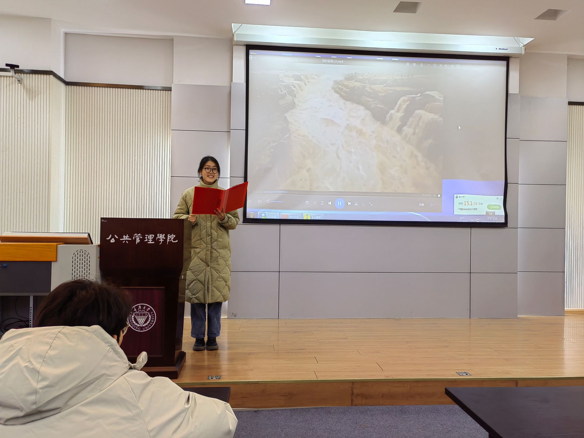 在大家的朗诵结束后,评委的评分也有了结果,于是进行本次比赛的第二个环节评分颁奖。评分结果里共有六名同学脱颖而出,得到了学院准备的奖品,并且王丽娟同志为他们颁发了奖状。同学们纷纷感谢这次活动的举办,不仅让自己的能力得到了锻炼而且再次体会到了经典育人的魅力,王丽娟同志表示只要用心准备,不管最后结果如何,就一定会有收获,生活如是学习亦如是,我们当代青年理应戒骄戒躁,多多诵读经典,沉淀自己,提升自己,从文学艺术作品中寻找价值的肯定和情感的皈依。