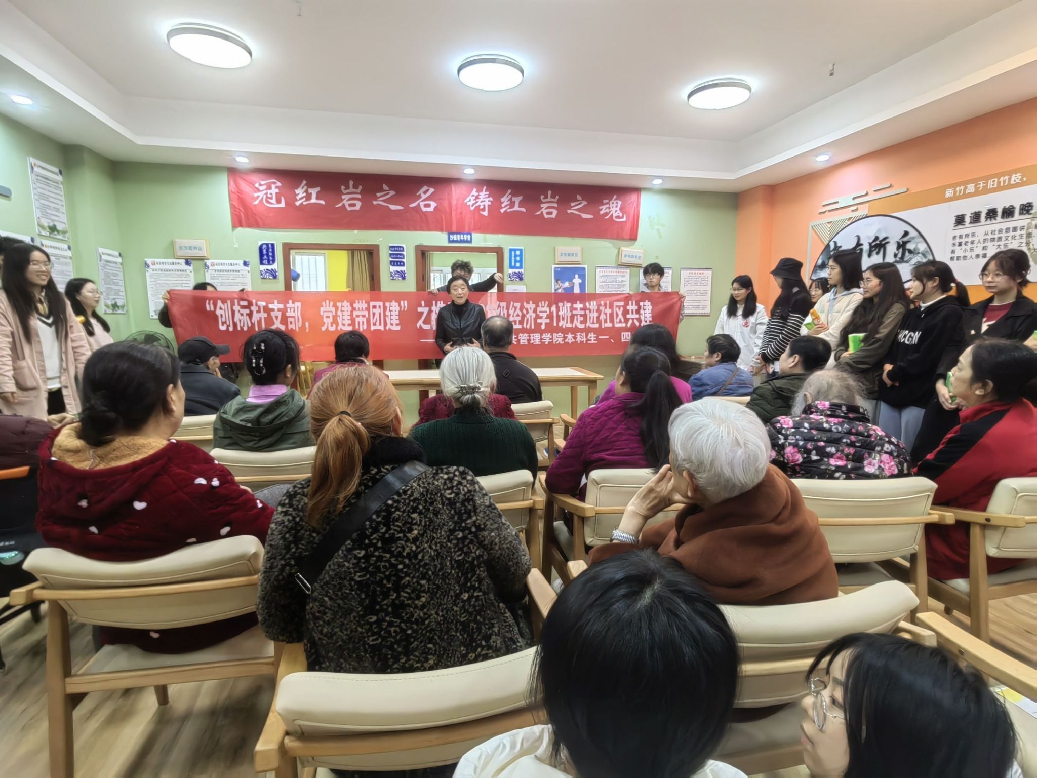 本科生一、四支部联合2022级经济学1班于沙坪坝区松林坡社区便民服务中心举行“创标杆支部,党建带团建”之携手2022级经济学1班走进社区共建活动,本次活动由在线色情