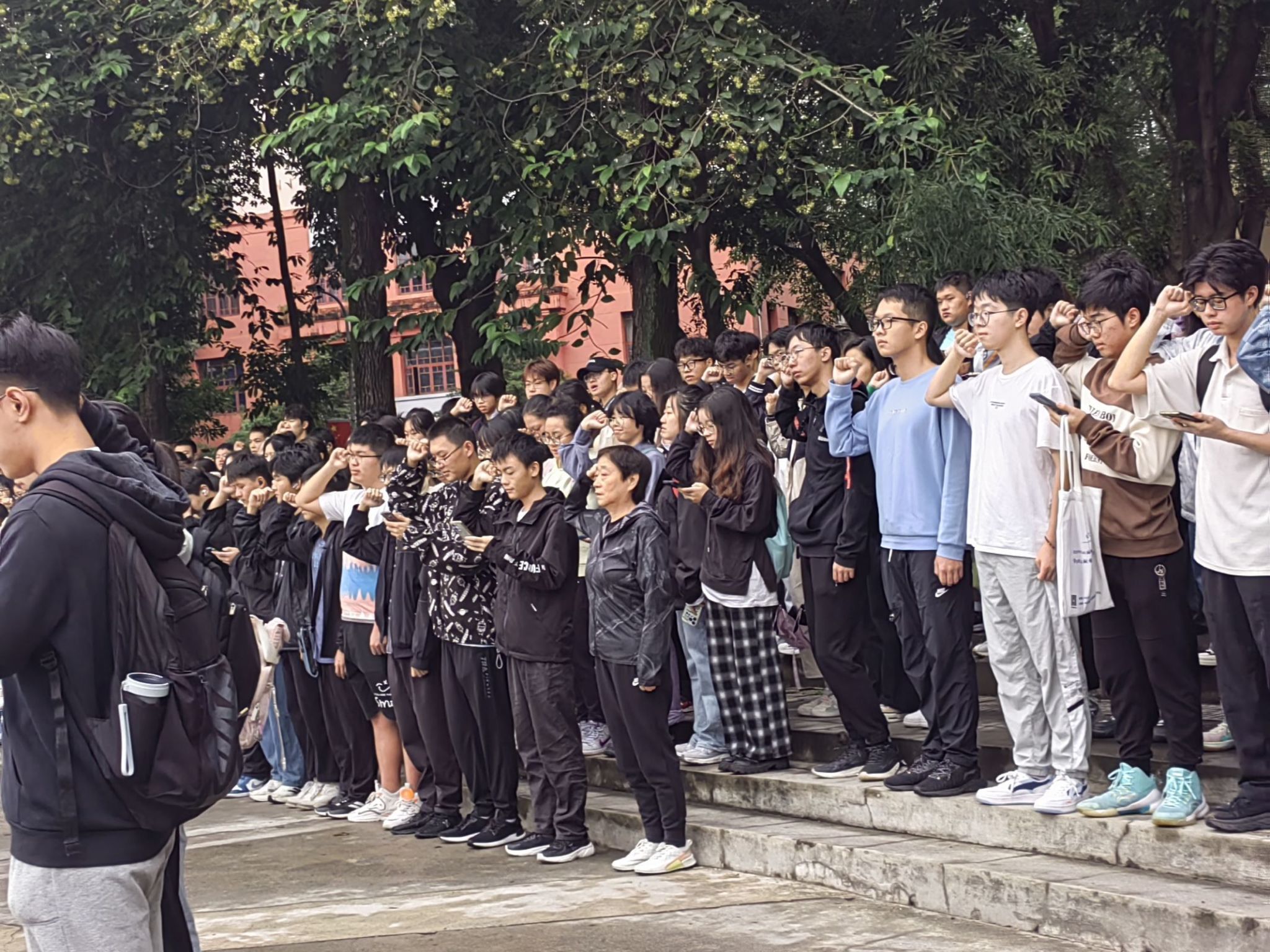 本科生一、四支部在思群广场上举行了隆重的升国旗仪式,数百名同学与老师齐聚一堂,共同见证了国旗冉冉升起的时刻。