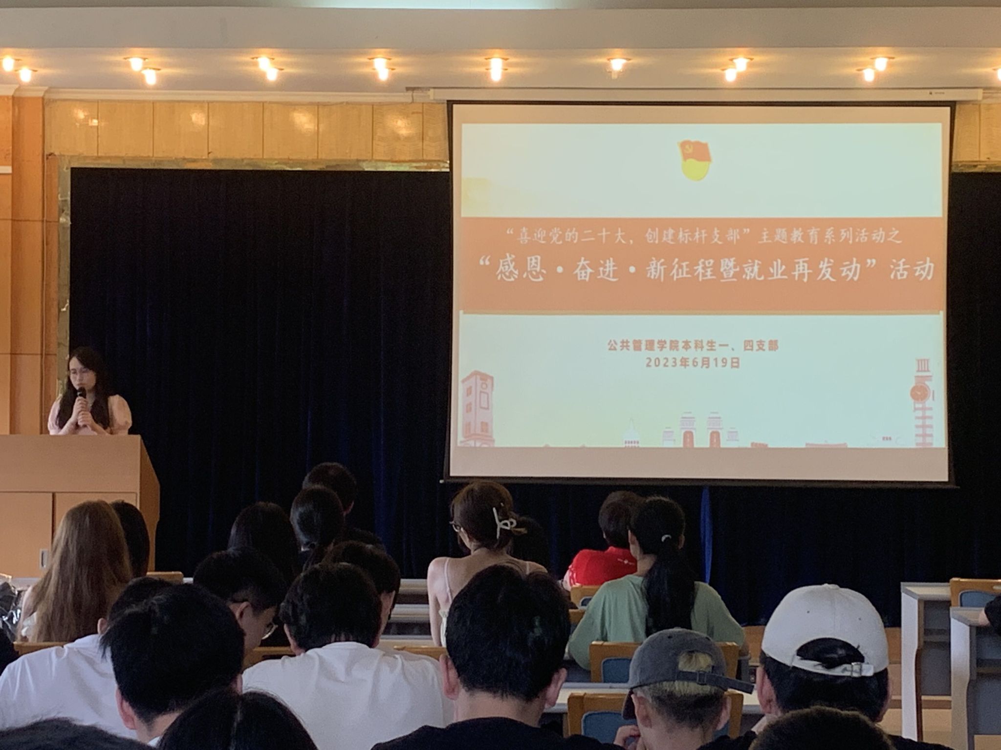 本科生一、四支部全体党员以及全体入党积极分子和青年团员参加。