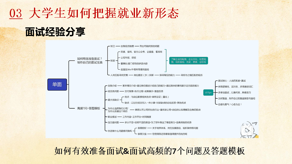 本科生一、四支部全体党员参会。此次活动分为视频学习、分析就业新形态的难点与焦点、求职面试经验分享、交流互动四个部分。