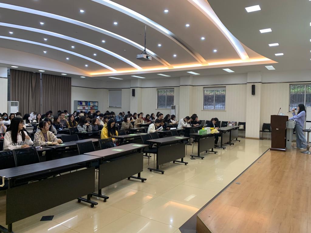 首先,陈烨靖同志介绍了本次活动的主题。其次,熊经理简单介绍了益丰企业,接着由张部长进行宣讲。她告诉同学们,找工作要先找准自己想去的行业,然后在行业里挑选适合自己的企业;若是想找大公司的工作,注意从公司市值、在线色情、盈利情况、社会责任等多方面来衡量。