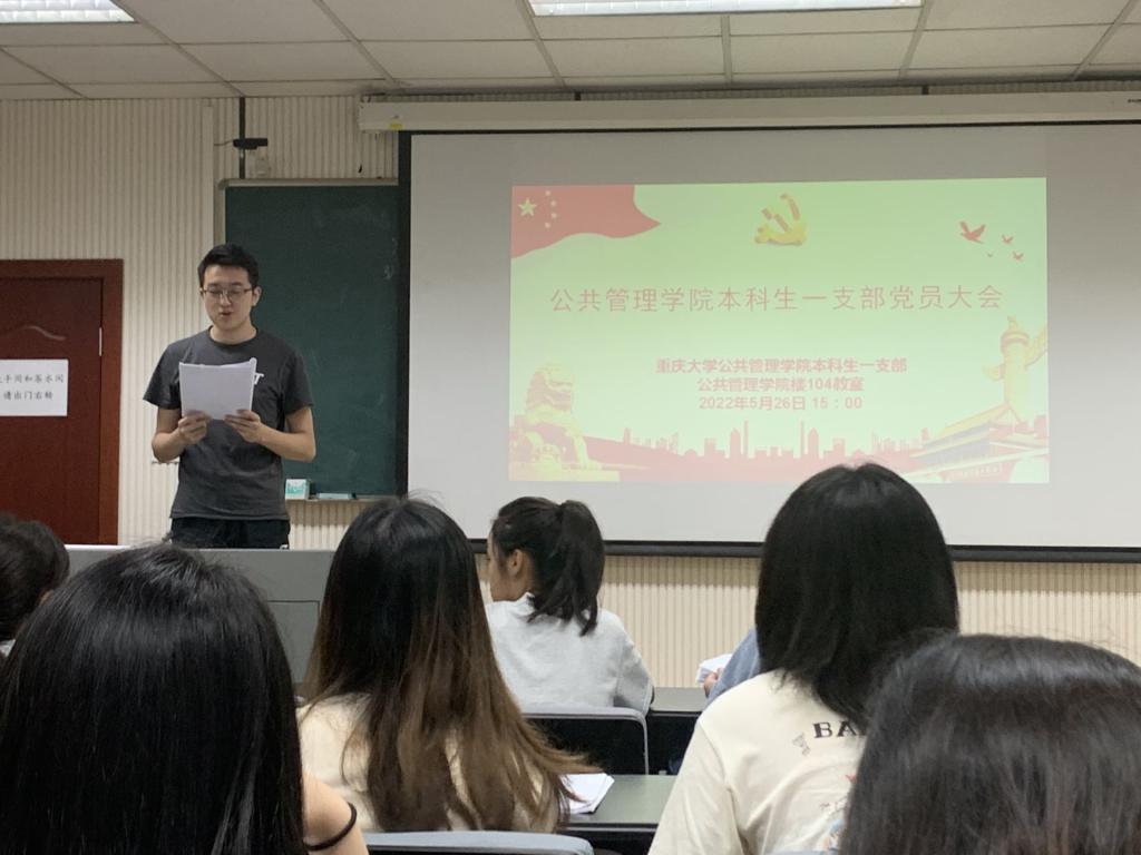 2022年5月25日下午15时,大会讨论决定了晏永安、高天意、钟一鸣3名发展对象的预备党员接收事宜。2022年5月26日下午15时,大会讨论决定了王晶、扎西卓玛等6名发展对象的预备党员接收事宜。会议均严格按照党组织接收预备党员程序,由发展对象逐一宣读《入党志愿书》,向党组织汇报个人情况,包括自身对党的认识、入党动机、个人经历以及在校表现等,随后入党介绍人对其进行情况介绍,并表明意见,最终经过与会正式党员的投票表决,决定是否接收该发展对象为中共预备党员。